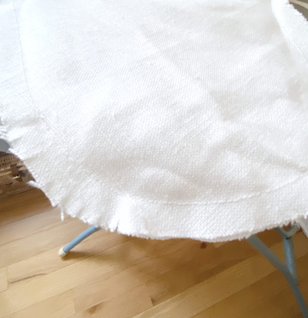 Clip the curves slightly to allow fabric to lay flat when turned to right side.