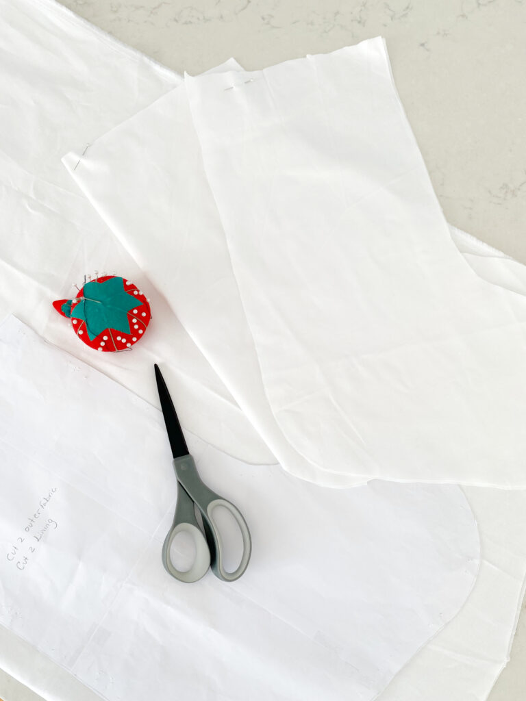 Now you are ready to begin. Pin your pattern to the fabric and cut two pieces (for front and back).