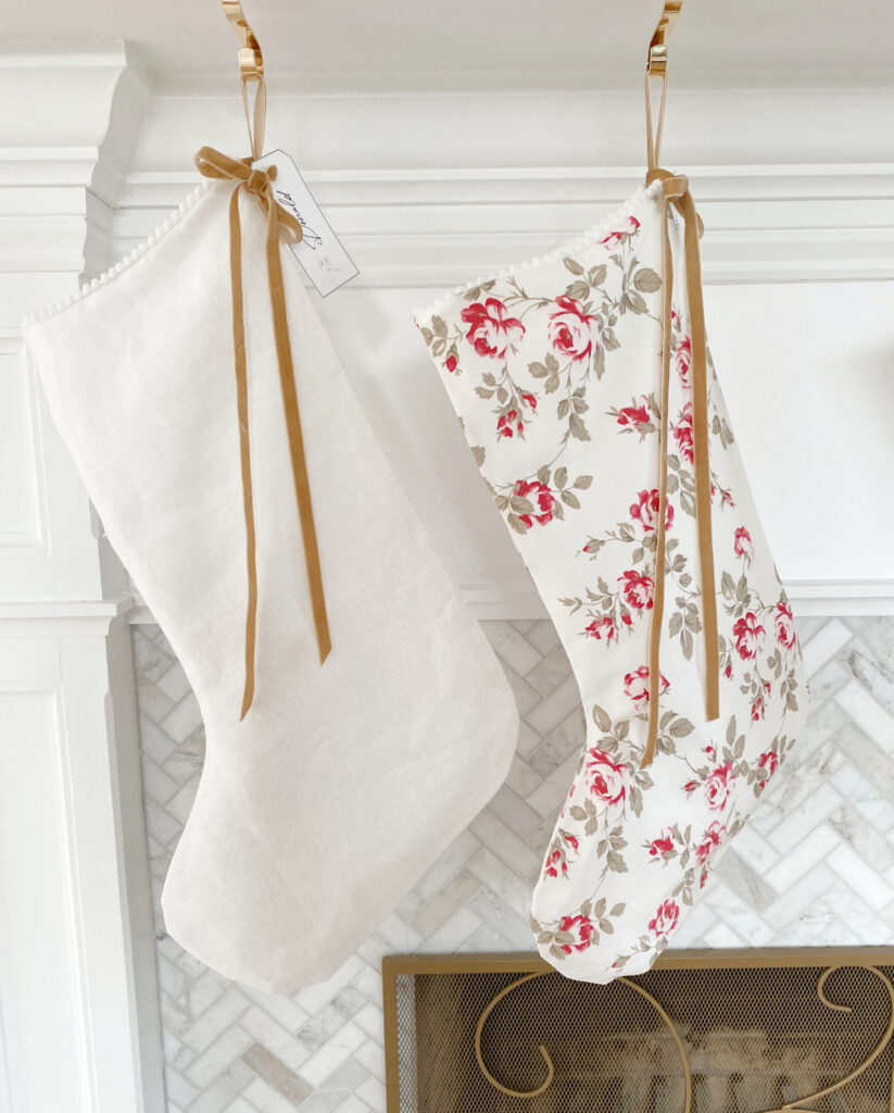 Sew a Pretty Linen or Vintage Floral Christmas Stocking (free pattern included)